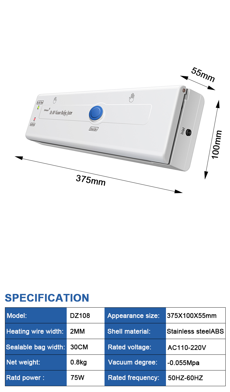 DZ108 2026 New Electric Kitchen Appliance Hot Selling Portable Mini Household Food Vacuum Sealer Energy Efficient