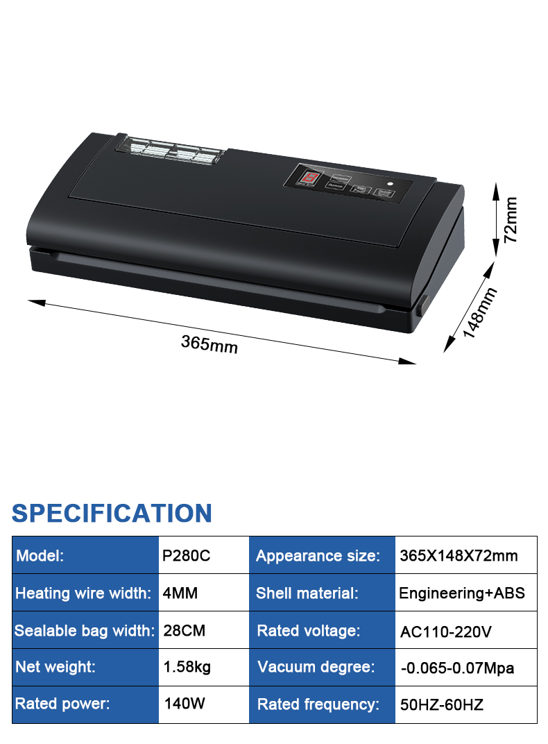 P280C Quality Heavy Duty Vacuum Food Sealer Plain Bag Vacuum Sealer Machine Liquid Food Vacuum Sealer Machine