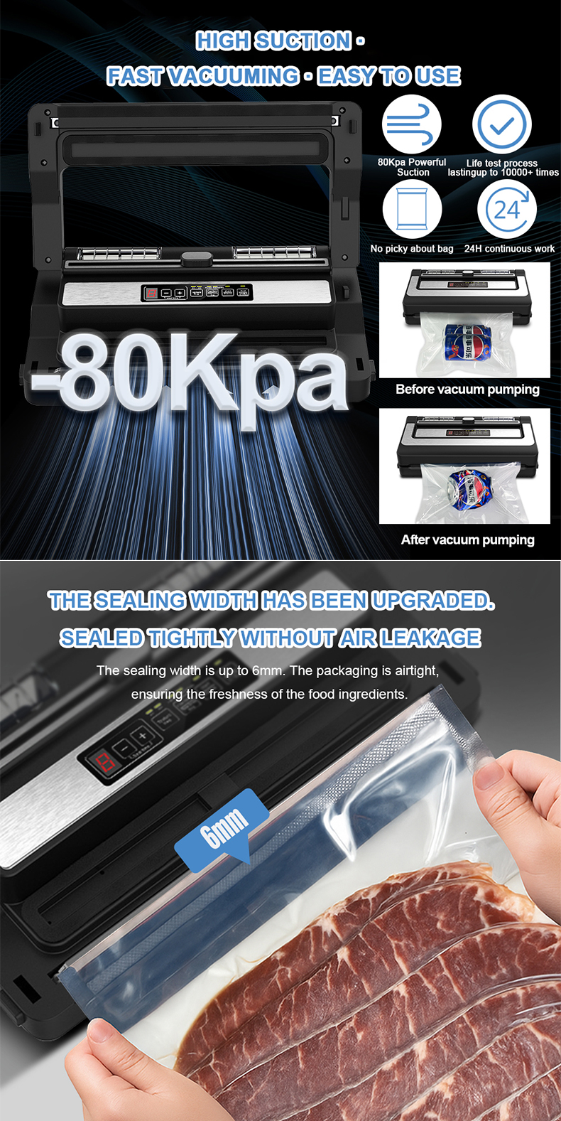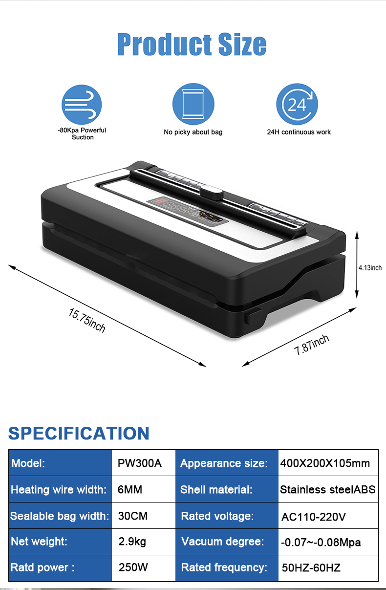 PW300 Commercial Automatic Vacuum Packaging Sealing Machine Multi-Function Portable Plastic Sealer for Home Use for Food Storage