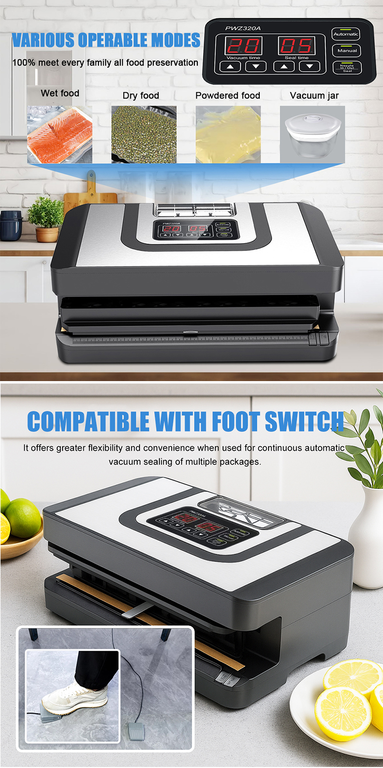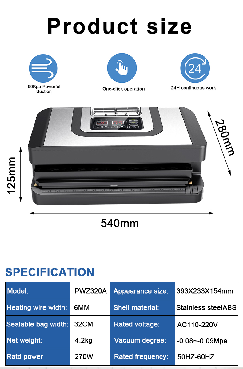 PWZ320 Factory Direct Sale 110v 220v Single Nozzles Commercial 32cm Extended Seal Vacuum Sealer Universal Bag Vacuum Sealer Machine