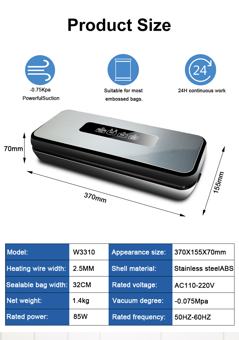 W3310 High Quality Automatic Touch Screen Powerful Pump Household Electric Food Preserver Vacuum Food Sealer